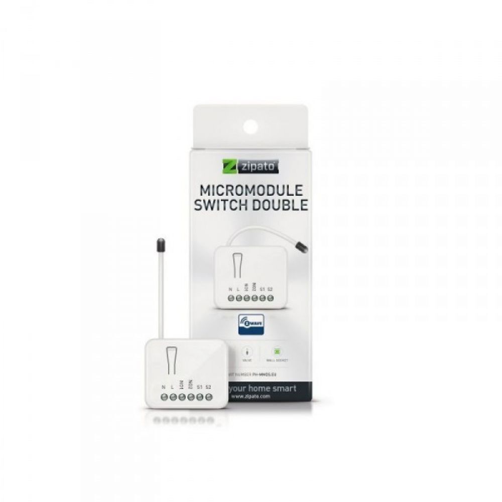Zipato’s PAN04-EU micromodule provides control of two electrical circuits via the Z-Wave protocol, allowing you to save existing electrical switches. In this way, you will be able to switch on and off the connected consumers via the existing electrical switches, Z-Wave controller or via the button on the micromodule itself.