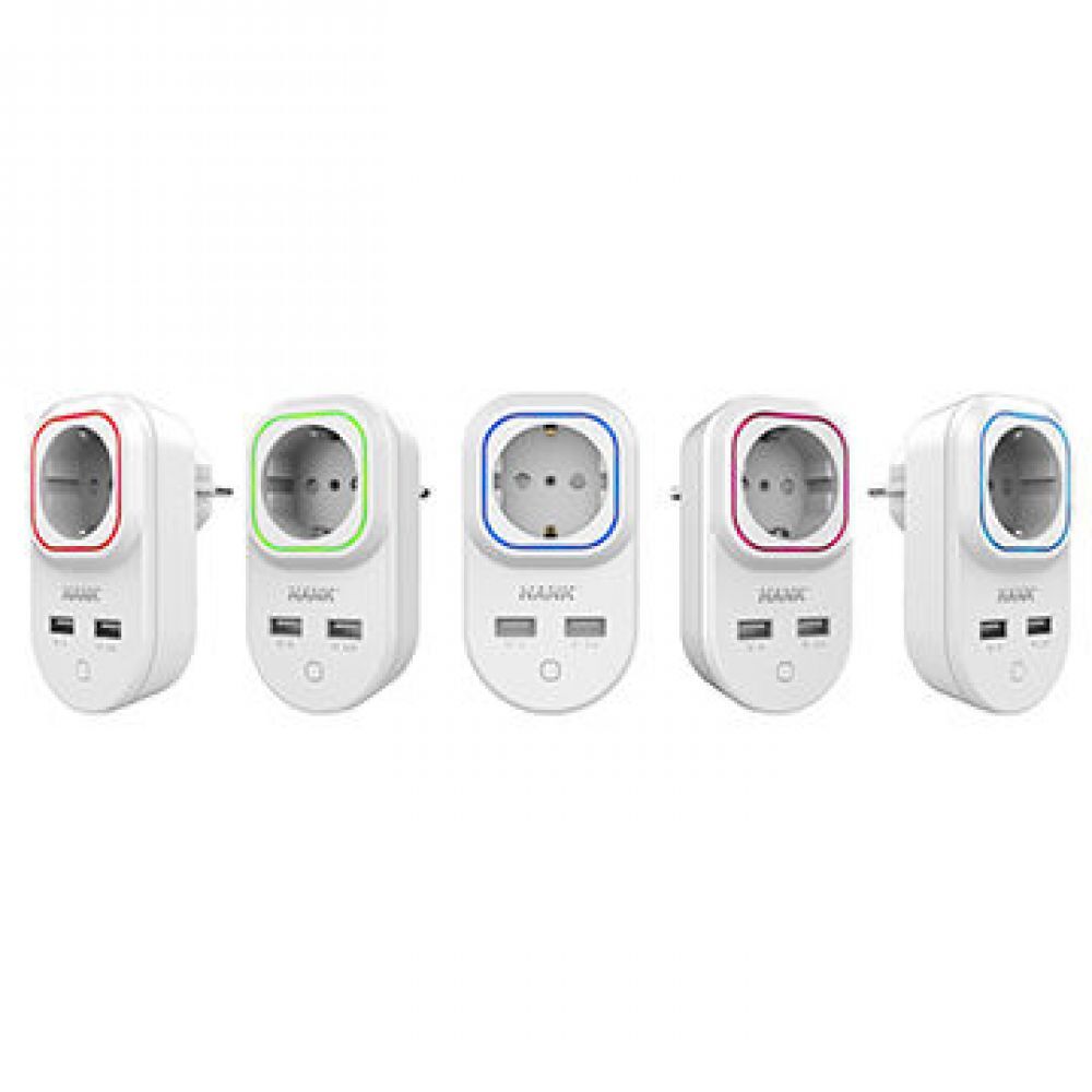 The Hank smart plug offers an extremely convenient feature: Two USB charging ports with 5V and 2.4A for your smartphone or other USB device.