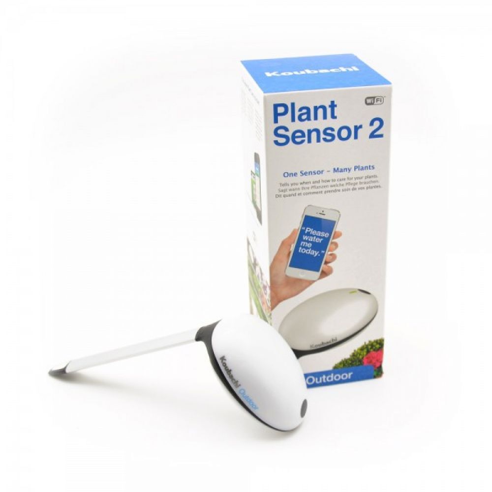 The Koubachi wireless sensor is designed to be placed directly in the garden, where it collects valuable data about your plant. It will inform you about soil moisture, temperature and light. The collected data is sent via WiFi to a receiving device, so you will always know when the flower needs water, light, fertilizers, etc.