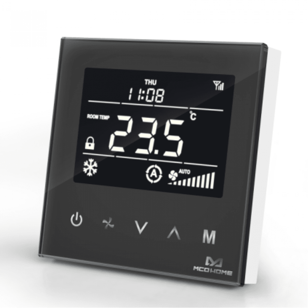 MCOHome Fan Coil Thermostat is a Z-Wave enabled device for indoor temperature control. It is mainly applied to a 2-pipe Fan coil system. It can read room temperature and local time, and automatically control fan speed based on the temperature difference. The device is of high reliability and practicability.