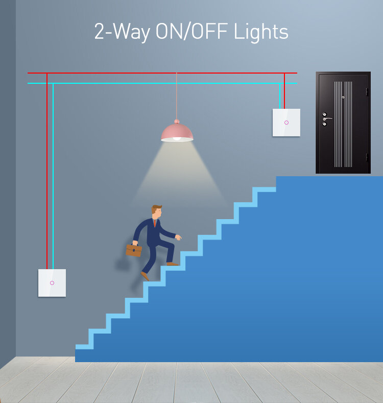 Neo Coolcam two way wall switch has a very modern and elegant design, the front panel is made of tempered glass and is suitable for all rooms in your home.