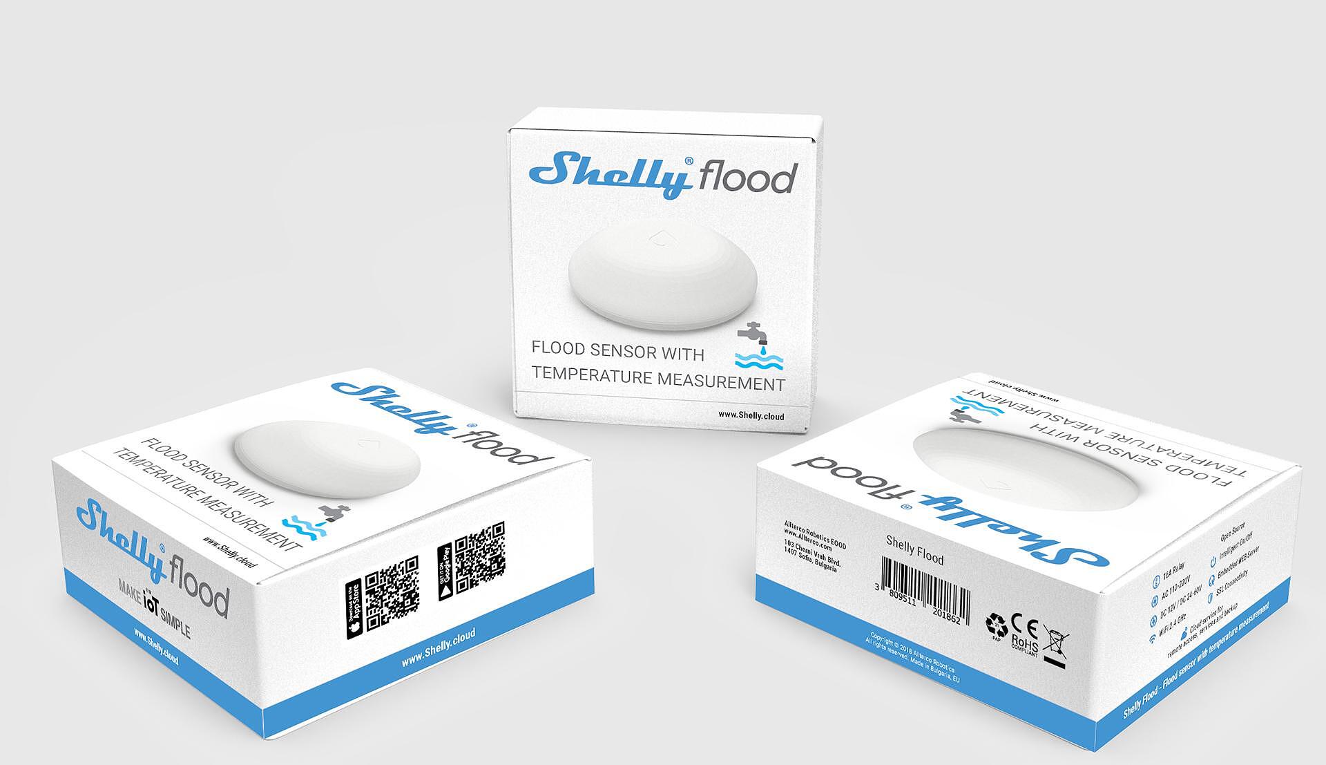 Shelly Flood is WiFi operated flood sensor. Shelly Flood detects for any type of leakage and has a built-in temperature sensor and is the world’s first Wi-Fi Flood sensor with Temperature measurement, working up to 18 months on battery. It has a compact design that fits anywhere. The sensor record all themperature measurements for up to one year, so you can always check the data for your home.