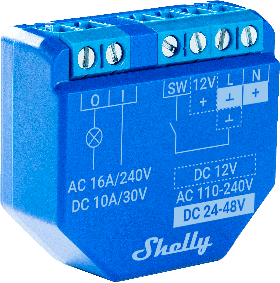 - Low voltage support – Shelly Plus 1 can be powered by 110-240V AC, 12V DC, or 24-48V DC