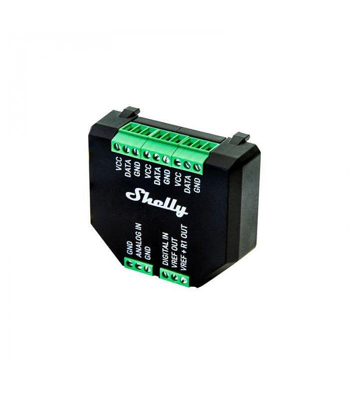 Shelly Plus Add-On is a galvanically isolated sensor interface for all Shelly Plus relays. It can be used to measure temperature and humidity by its 1-Wire terminals, or connect various analog and digital sensors for complex automation and higher efficiency. Shelly Plus AddOn is also compatible with most Arduino sensors. You can use its digital or analog inputs to measure your desired parameters and create complex automation scenes based on the sensor data. Some of the applications you can use if for are garage door position, water heating, control your lights based on luminousity, motion-controlled lights and ect.