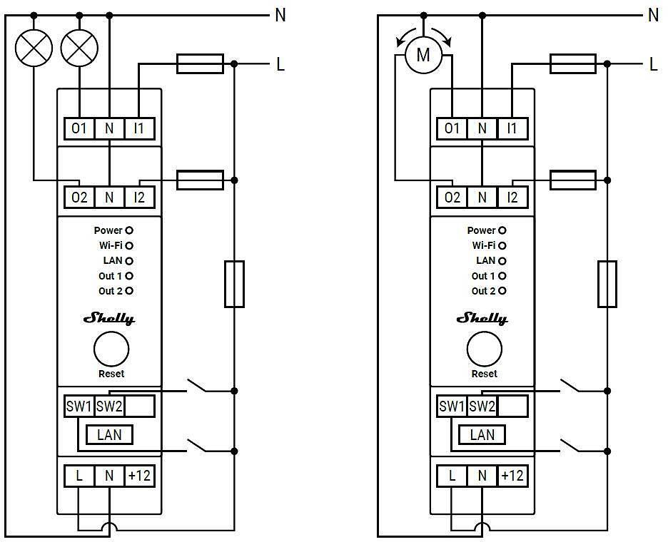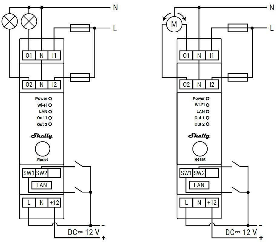 Shelly Pro 2PM is a professional 2- channel relay with Wi-Fi, LAN, and Bluetooth connection. Suitable for office and business facility automation with remote control and precise power management. DIN rail mountable insde a breaker box. Enhanced safety features and compatible with most used home automation platforms. Control lights, roller shutters, garage doors, gates, awnings, shades, pool covers, bi-directional AC motors.