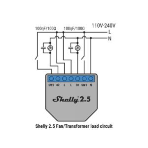 RC snubber should be wired between Output and Neutral of the circuit To be used for Shelly1/1PM and Shelly2.5 which are restarted when switching on inducti